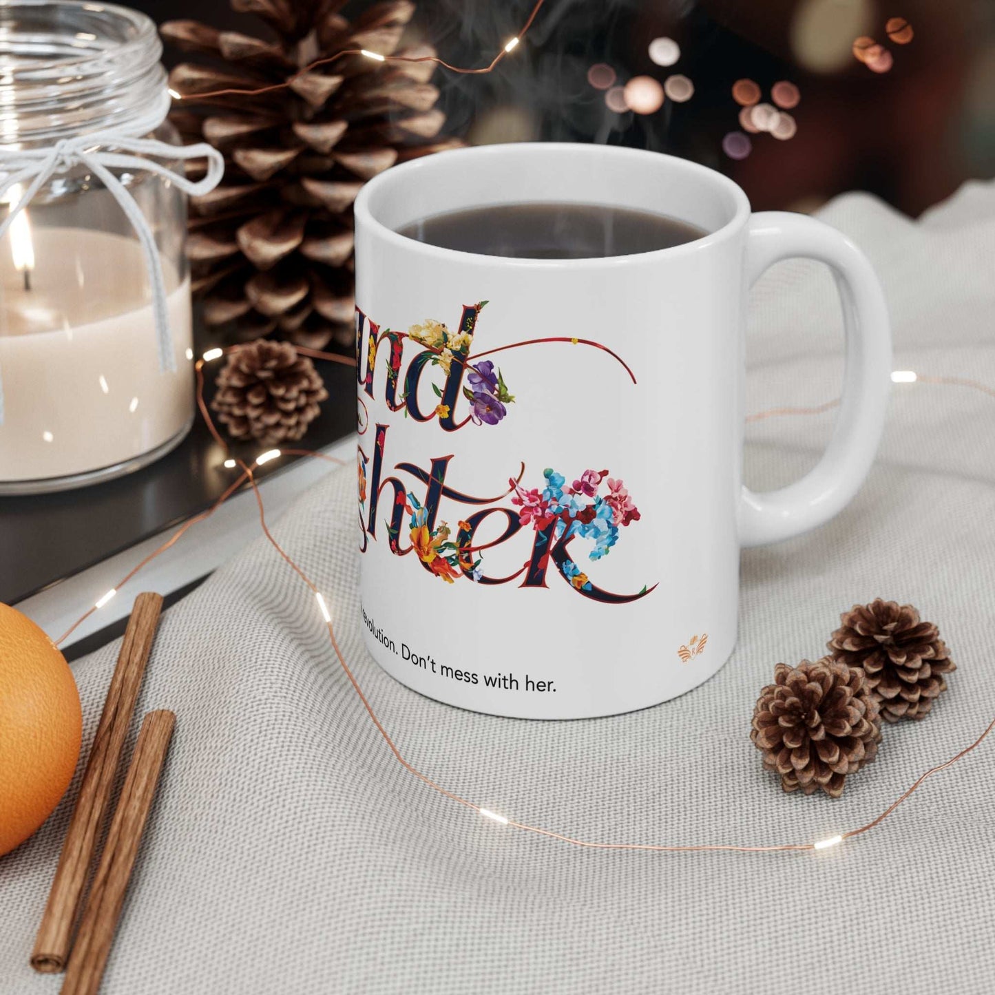 This mug is a delightful gift for birthdays, International Women's Day, or any moment worth celebrating, featuring a vibrant floral design and a playful definition that captures the unique charm and rebellious spirit of a granddaughter, making it as special as she is.